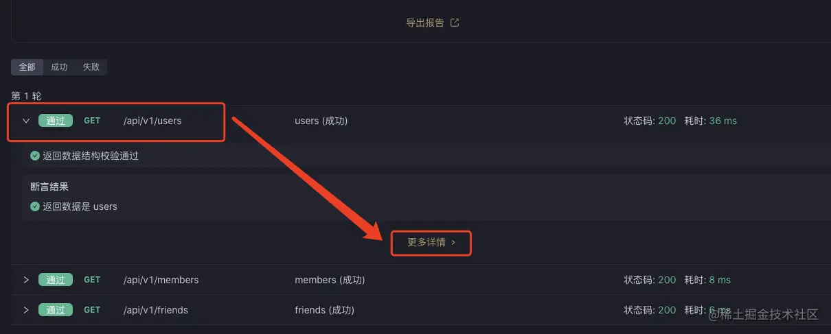如果你想单独看某一个测试例子的具体数据,可以点击对应的更多详情按钮,进行查看