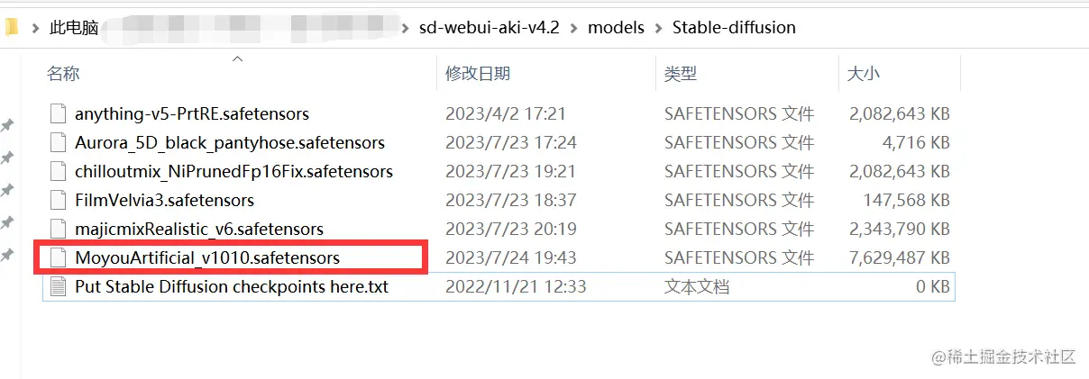 下载的文件放到整合包的这个路径里..\sd-webui-aki-v4.2\models\Stable-diffusion