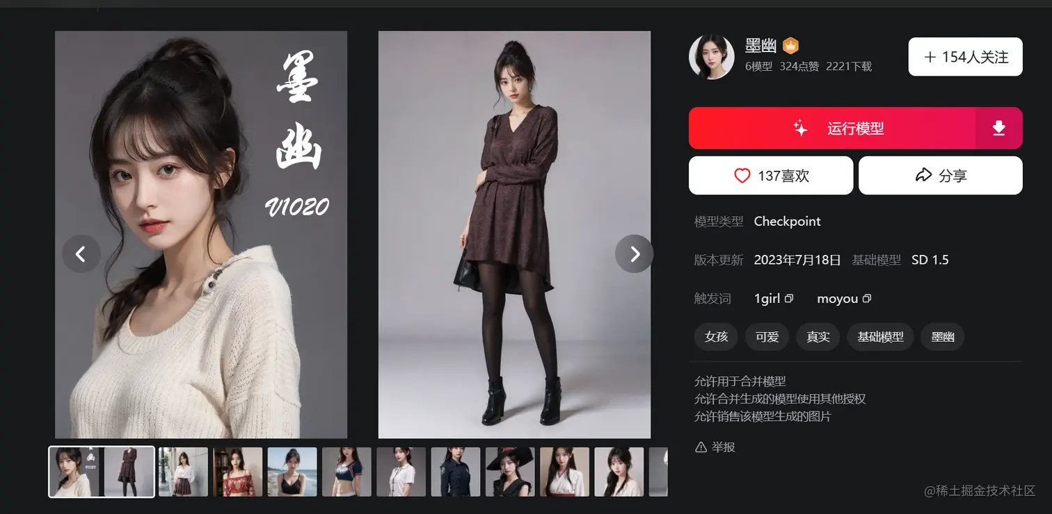 这里用到的是墨幽大佬的真人模型(个人感觉这个比chilloutmix用起来简单些)(官方下载地址)