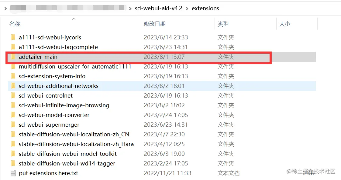 解压的文件夹,放到..\sd-webui-aki-v4.2\extensions 文件夹下面