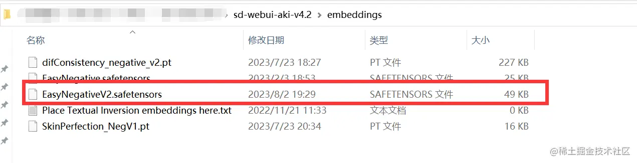 下载后的文件,放到..\sd-webui-aki-v4.2\embeddings 文件夹下: