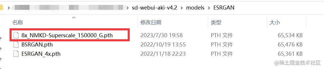下载后的文件,放到..\sd-webui-aki-v4.2\models\ESRGAN 方件夹下