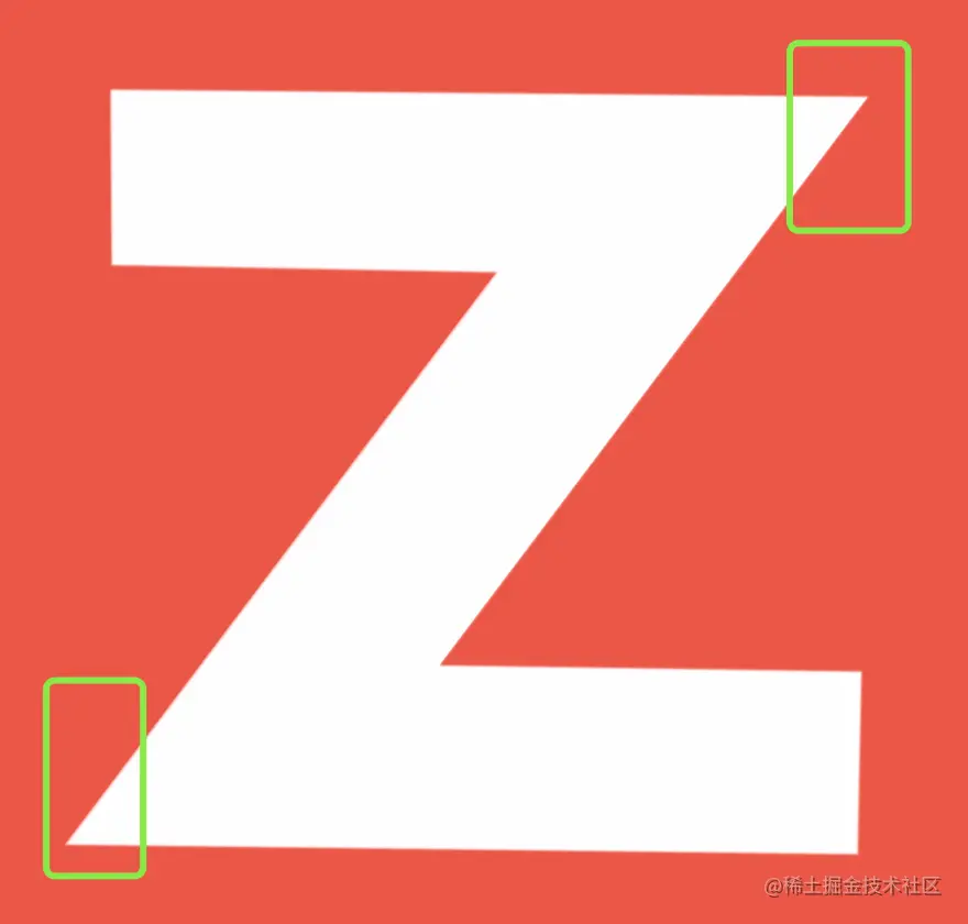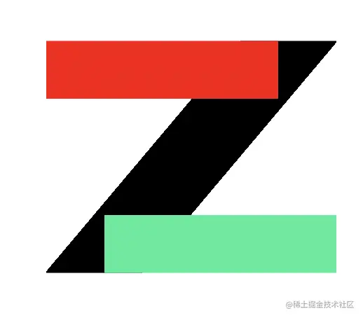 接下来使用另一个伪元素实现 Z 字母的效果,仔细观察 Z 字母的两个拐角都是锐角效果,并不是日常字母有拐角的效果。