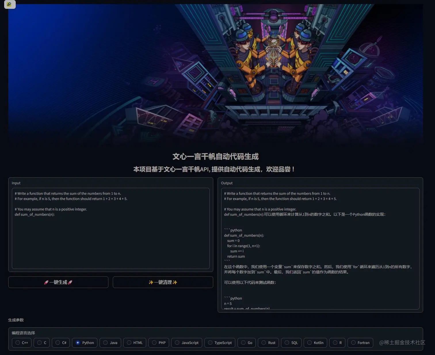 大家期待文心一言API开放好几天了,那么项目来了,本项目是基于千帆API构建自己的代码生成器,非常方便。