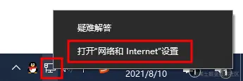 右键任务栏小电脑-》选择”打开‘网络和Internet‘设置“