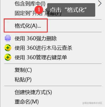 步骤3:找到移动硬盘的盘符,单击右键,点击【格式化】;