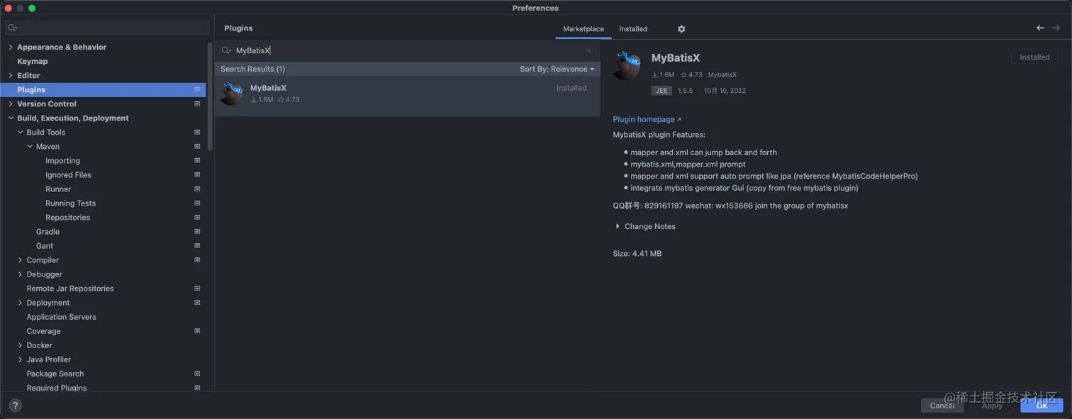 Intellij IDEA → Settings → Plugins → Marketplace → MybatisX → 重启 IDEA