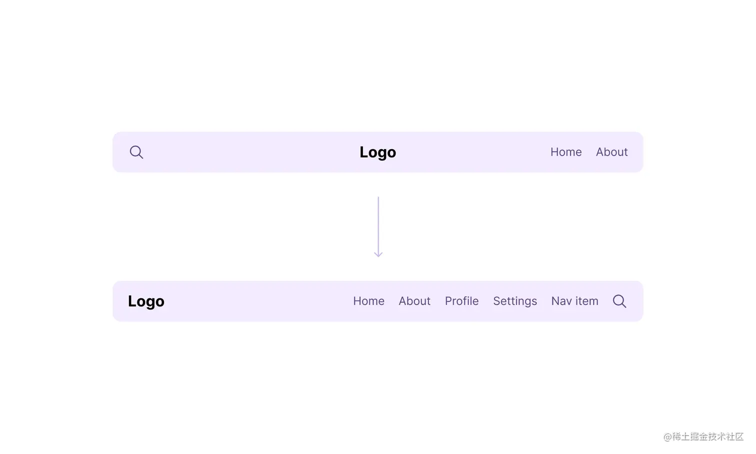 在下图中,我们有一个标题,当导航项有4个或更多时,应该改变其布局。通过CSS :has和:nth-last-child,我们可以检测并改变布局。