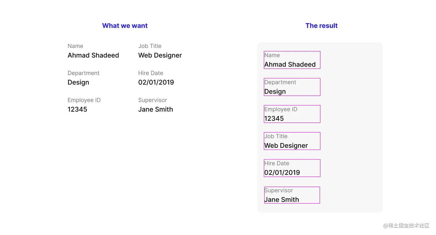 我们可以用display: inline-flex来解决这个问题,但对我来说,这仍然不是最佳解决方案。原因是,浏览器会考虑到HTML元素之间的间距,它们应该是这样的: