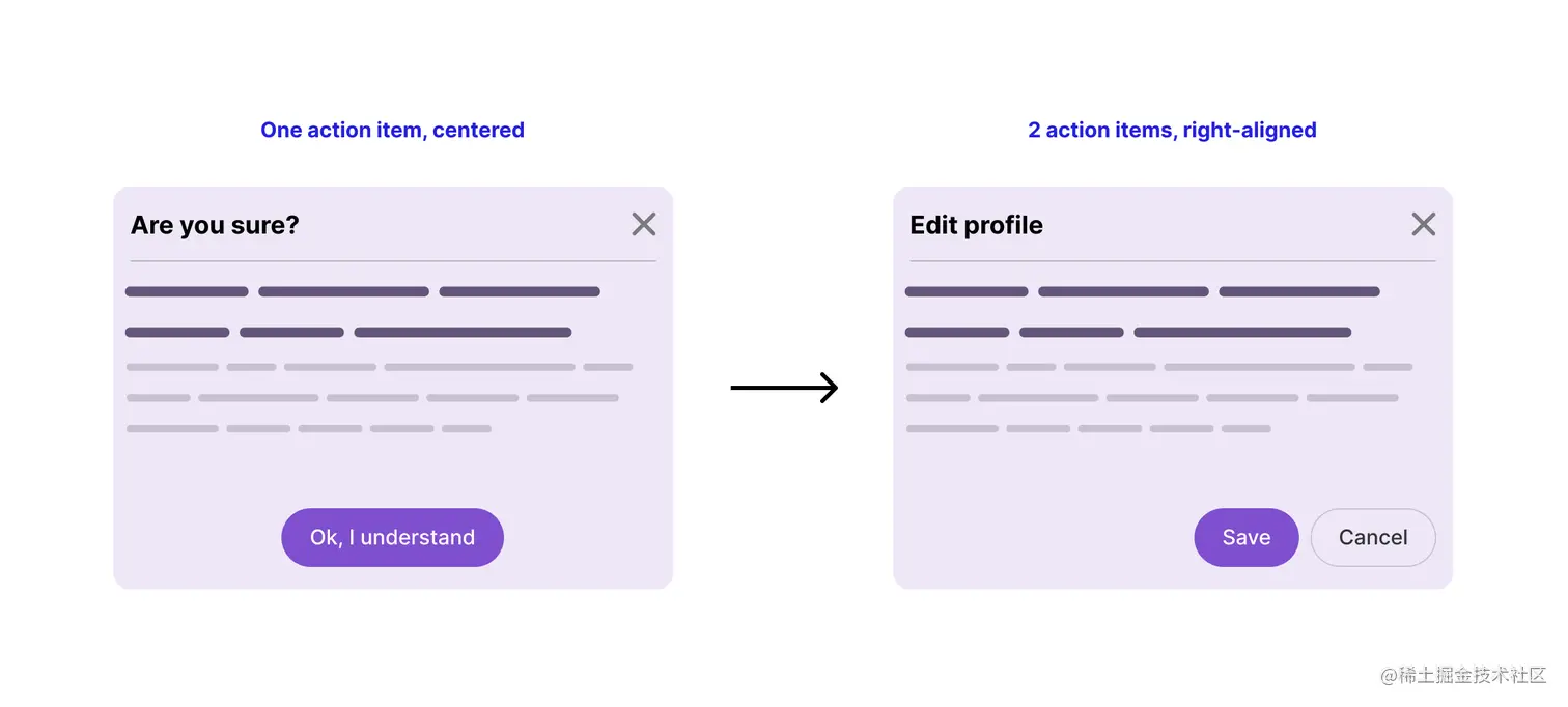 在一个设计系统中,我们可能需要根据我们有多少个操作来动态地控制模态操作的排列。