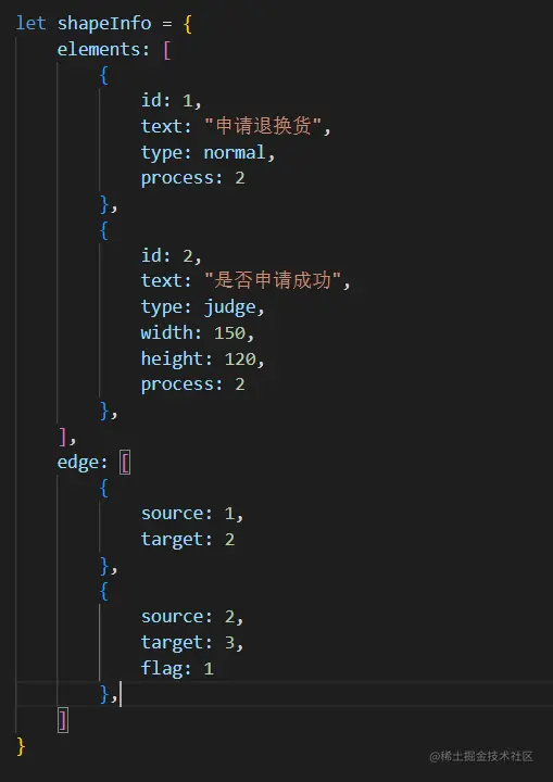 edge数组则包含了各个流程中间的连接关系,表现在流程图中就是箭头从source指向target,其中flag代表在决策型流程中的结果。