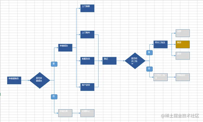 这里展示一下修改流程图后,数据同步修改的功能,我们以“换货”举例,默认状态下,换货的数据是这样的: