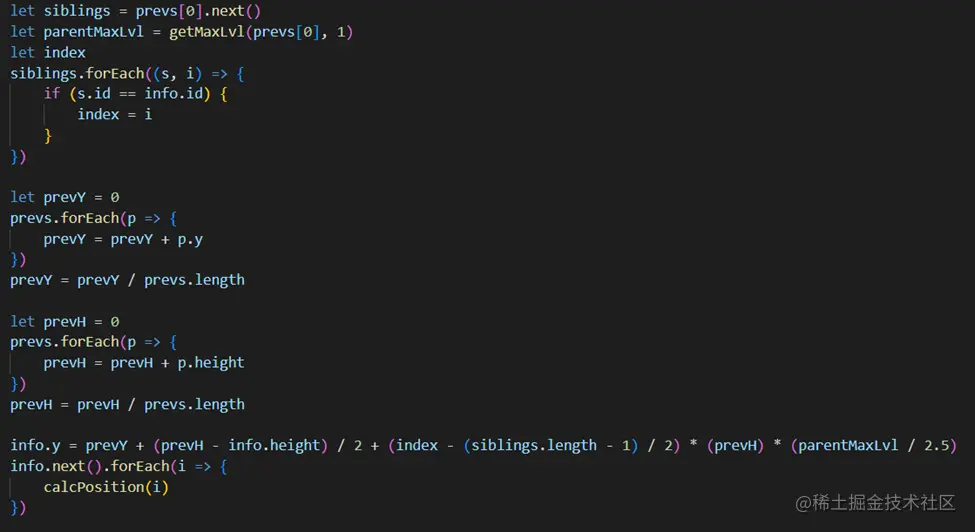 最后的代码可以看到这里也是一个递归计算,需要计算每一个节点下一级的位置。