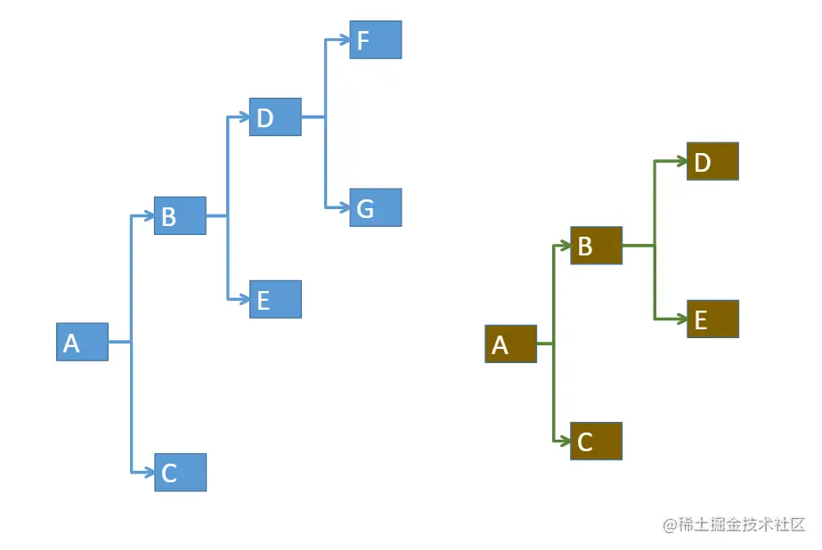大致思路如下:请看下图的结构,左右两图中,B、C两节点距离A的纵向位置是不同的,这是因为左图的B节点拥有更多的子节点,而右图则较少,所以左侧在纵向需要拉开更多的距离,以摆放后续的节点。
