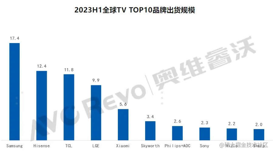 8月1日,奥维睿沃(AVC Revo)发布《全球TV品牌出货月度数据报告》显示,2023年上半年,全球电视出货共8918.9万台,同比下降1.7%,中国头部品牌出货规模持续扩大。海信(含东芝)电视出货延续高速增长态势,上半年全球出货1243.4万台,同比增长22.3%,继续以全球最高增速领跑行业,站稳世界第二。海信系电视全球出货量占有率提升至13.94%,创下历史新高。