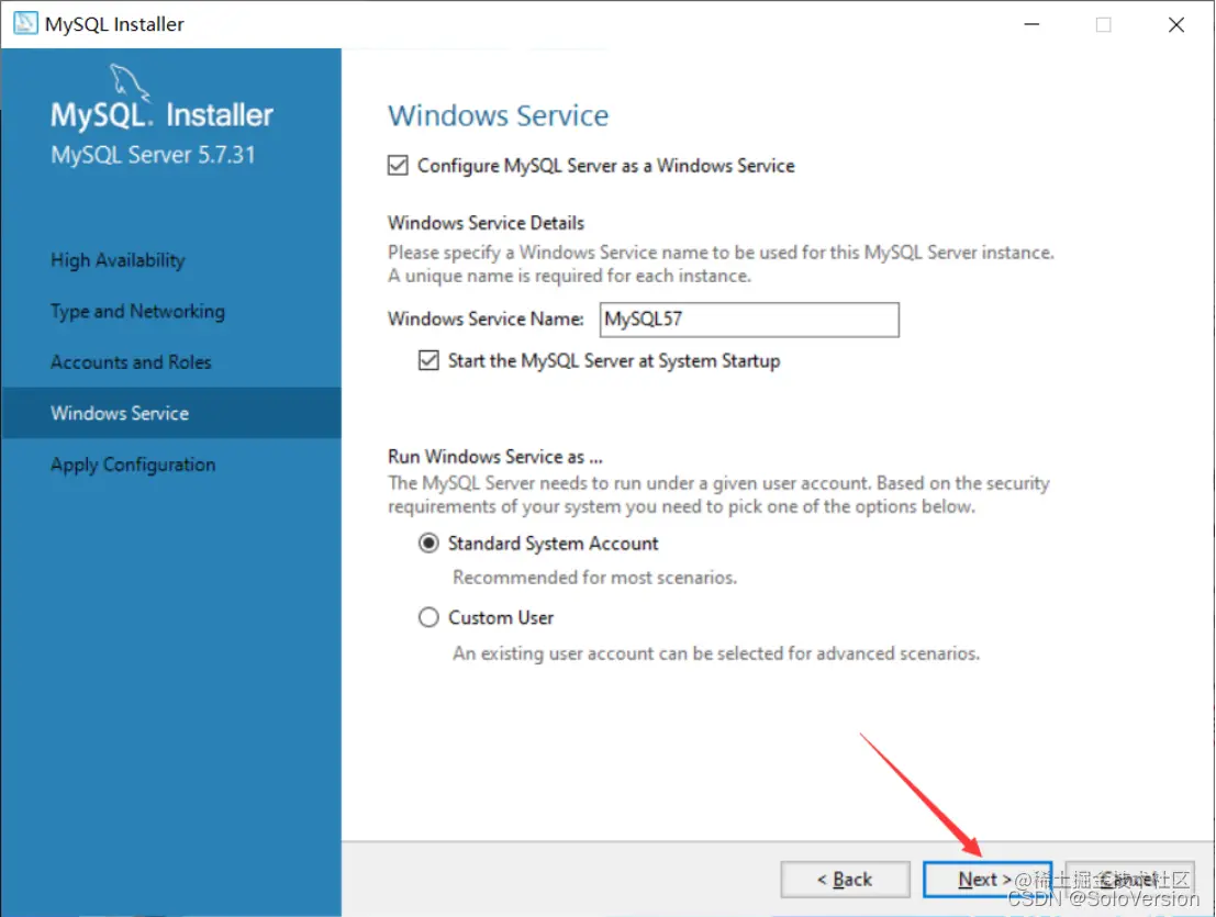 18. MySQL的默认端口是3306,不需要作修改,直接点击“Next”