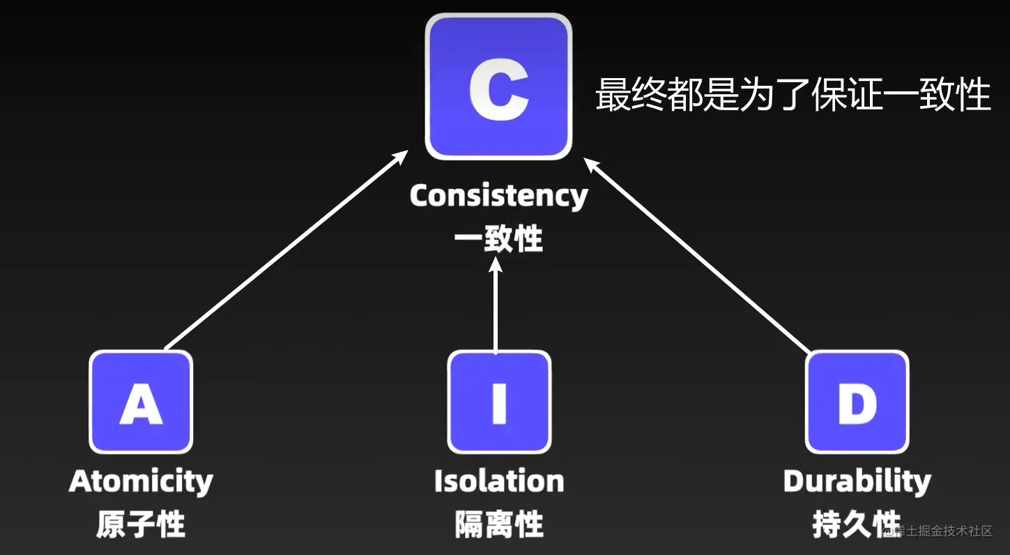 A 原子性:==事务是一个原子操作,要么全部执行成功,要么全部回滚失败。==如果事务中的任何一部分操作失败,整个事务将被回滚到初始状态,保持数据的一致性。