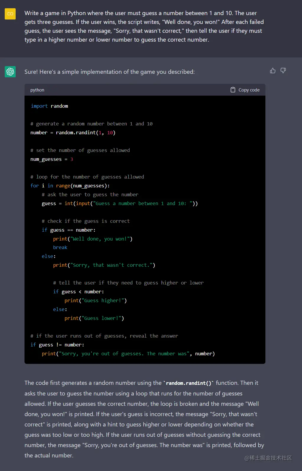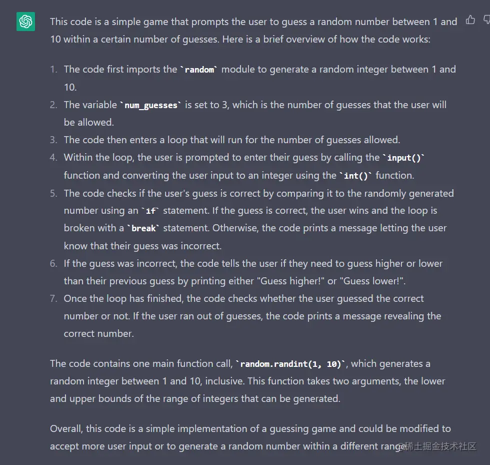 ChatGPT 用 Python 编写了一个简单的游戏。