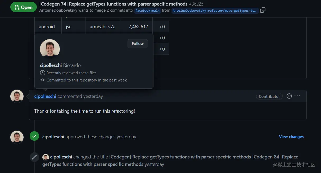 GitHub 上已批准的CodeReview。