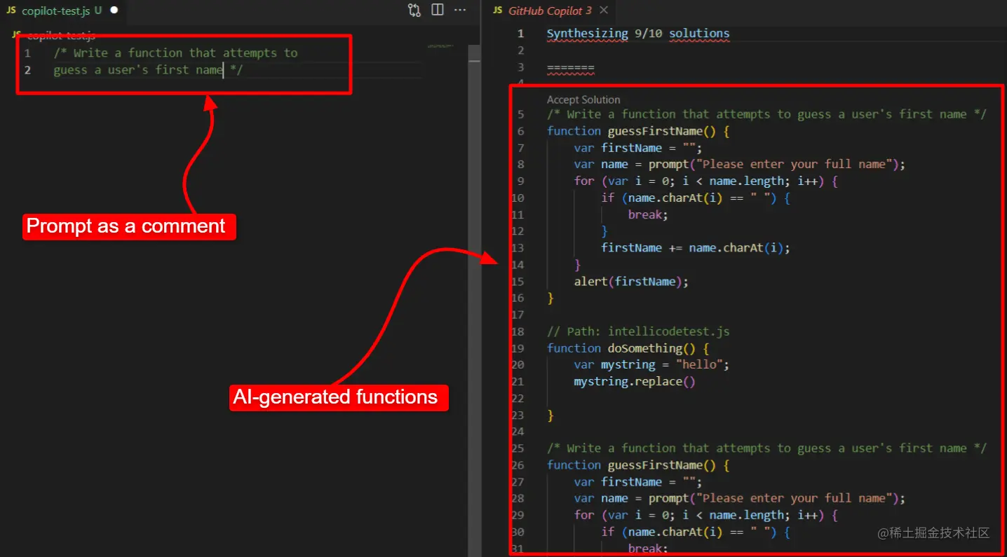 CoPilot 根据注释生成代码。