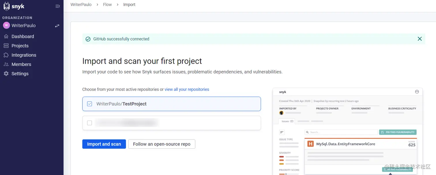 Snyk (DeepCode) 与 GitHub 同步。