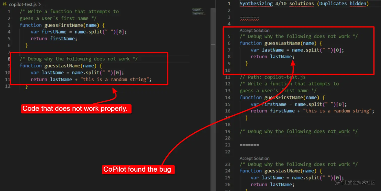 CoPilot 正确调试了一些代码。