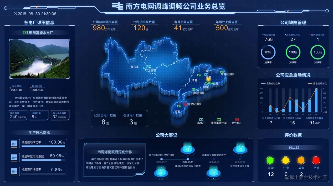在智慧电力领域,易知微不仅为湖南国网提供了智慧电力的建设,还为南方电网、多低风电公司提供了智慧电力的搭建,更多智慧电力的案例和电力可视化数据模板可前往易知微官网查看。