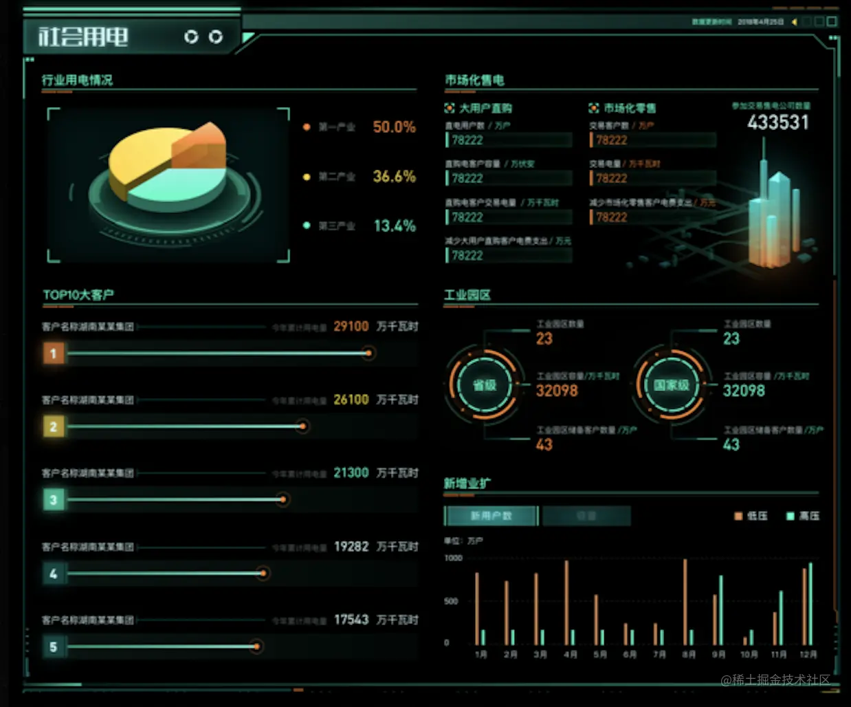 ●行业用电情况:展示三大产业用电情况分布