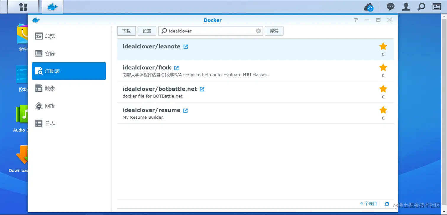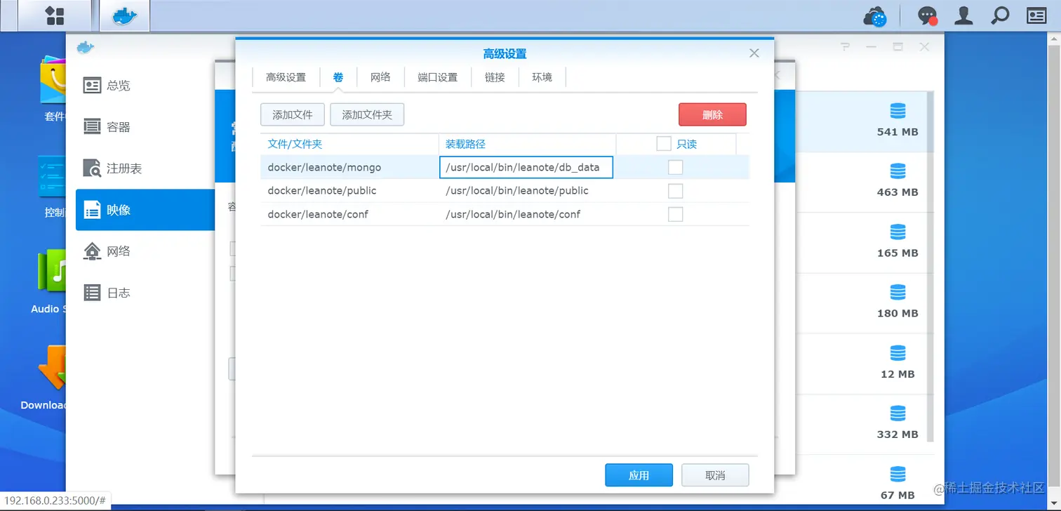 如果是类似群晖的 NAS(我只有群晖 2333)的话,在 docker 的注册表中搜索 leanote,找到 idealclover/leanote 并下载