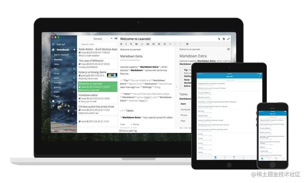 Leanote 的官网在 这里,它主要有这样的优点: