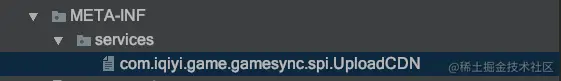 然后需要在resources目录下新建META-INF/services目录,并且在这个目录下新建一个与上述接口的全限定名一致的文件,在这个文件中写入接口的实现类的全限定名: