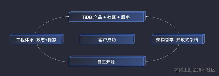 TiDB 自主开源的模式,打造了敏态 + 稳态的工程体系和开放式的架构哲学,而这一切的基础、最核心的部分就是 TiDB 的人才生态。TiDB 一直坚持开源,而 PingCAP 作为一家公司,是以营利为目的的,为什么还能一直坚持开源信仰?我们坚持做企业一定要回报社会,一个好的商业模式是什么样的?我们觉得应该是先创造社会价值,再从社会价值上萃取一部分商业价值,这也是我们对于自己未来长期的期望。