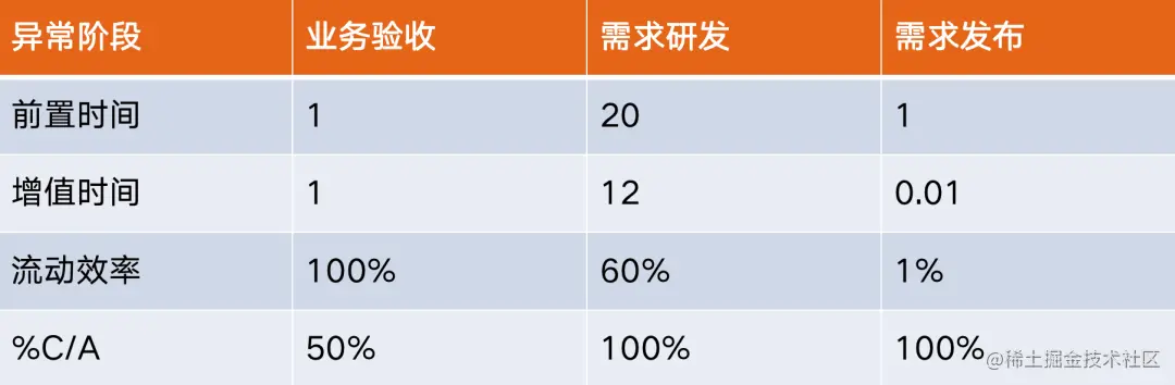 然而,**当我们画完价值流映射图后,发现了三个异常环节,**分别处于业务验收阶段、研发阶段以及发布上线阶段。