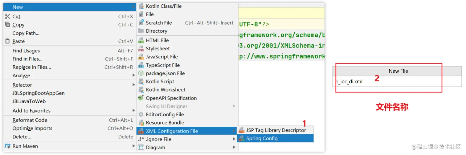 【第三步】创建Spring配置文件在resources目录下,配置对应类作为Spring管理的bean对象