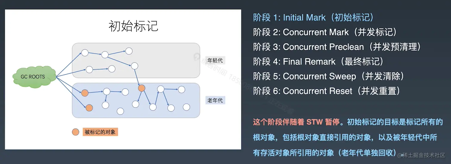 - 阶段 1: Initial Mark (初始标记)