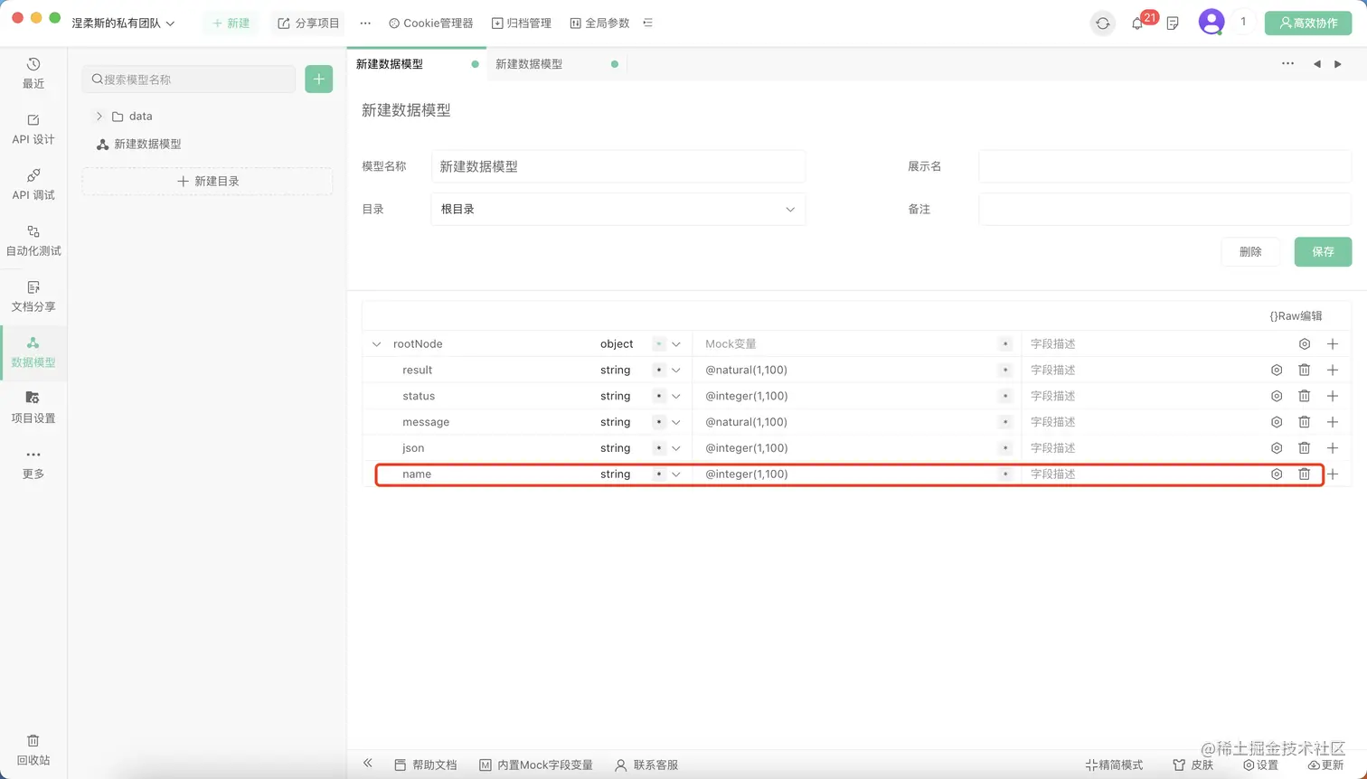 Apipost数据模型板块支持实时更新,任何对智能模型进行的更改都会自动更新到与其相关联的API数据结构中。这极大地减少了代码修改的工作量,同时也提高了开发效率。