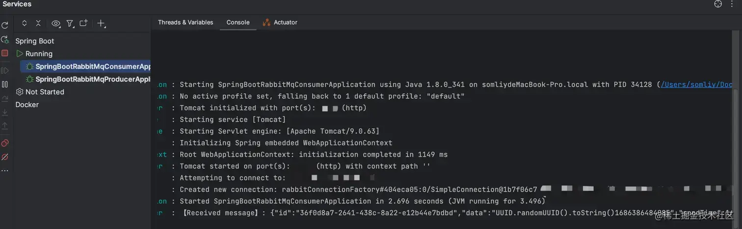 - 启动消费者SpringBootRabbitMqConsumerApplication.java