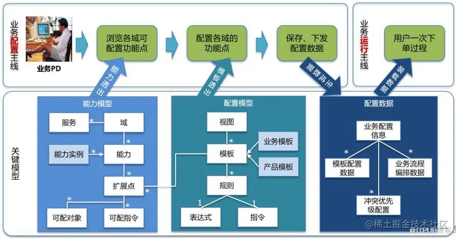- 管理域与运行域分离:业务逻辑不能依靠运行期动态计算,要能在静态期进行定义并可视化呈现。业务定义中出现的规则叠加冲突,也在静态器进行冲突决策。在运行期,严格按照静态器定义的业务规则、冲突决策策略执行。