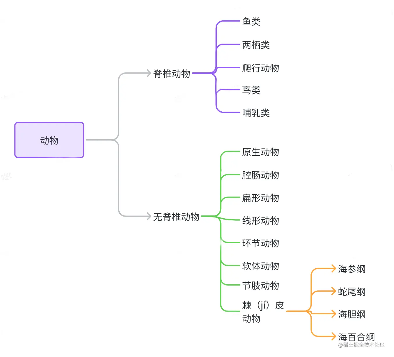 在现实世界中,所有我们见到的事物,人类都自然的对其给与了分层,比如: