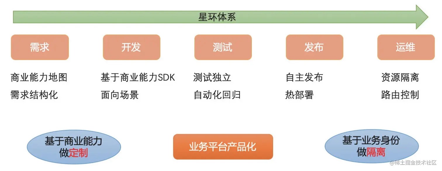 - 业务包与平台分离的插件化架构:平台提供插件包注册机制,实现业务方插件包在运行期的注册。业务代码只允许存在于插件包中,与平台代码严格分离。业务包的代码配置库也与平台的代码库分离,通过二方包的方式,提供给容器加载。