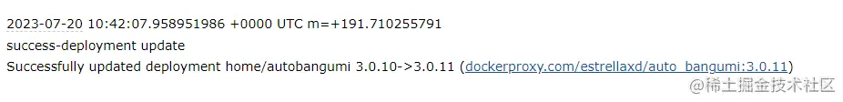 当 autobangumi 的作者发布了新的镜像版本后,Keel 便会自动更新此镜像,我们配置的邮箱也可以收 到通知提醒了,下图是最近一次 autobangumi 从 3.0.10 升级到 3.0.11 的邮件记录:
