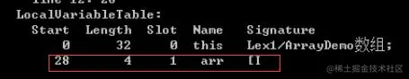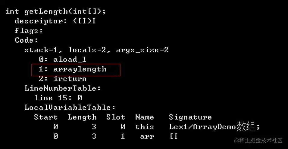 - aload_1:该方法的局部变量表中索引为1的引用推送至操作数栈。此处是生成的arr数组引用(意思整个数组先丢到操作数栈里)。
