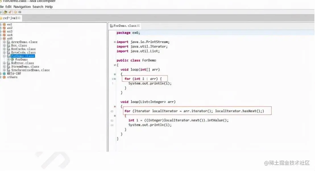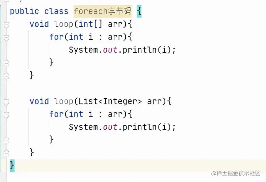 数组:将它们代码解释成了传统的变量方式,即:for(int i;i<length;i++)的形式。