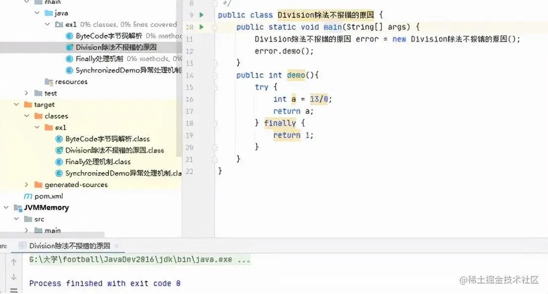 Java编译器使用了一种比傻的方式来组织finally的字节码。它分别在try,catch的正常执行路径上,复制了一份finally代码。追加在正常执行的后面。同时,再复制一份到其他异常执行逻辑出口处。(相当于对于字节码来说,如果异常中有finally的异常表。那么它会把自己的异常在try中,catch中各复制一份。怪不得finally一定能走到。有段时间还以为finally是异步达到的必然执行的效果)。