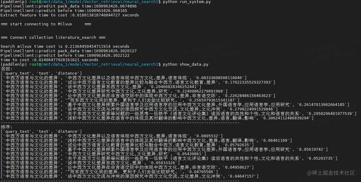 这里展示了能够从头至尾跑通的完整代码,您使用自己的业务数据,照着跑,能搭建出一个给定 Query,返回 topK 相关文档的小型检索系统。您可以参照我们给出的效果和性能数据来检查自己的运行过程是否正确。