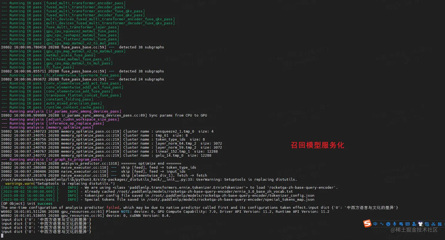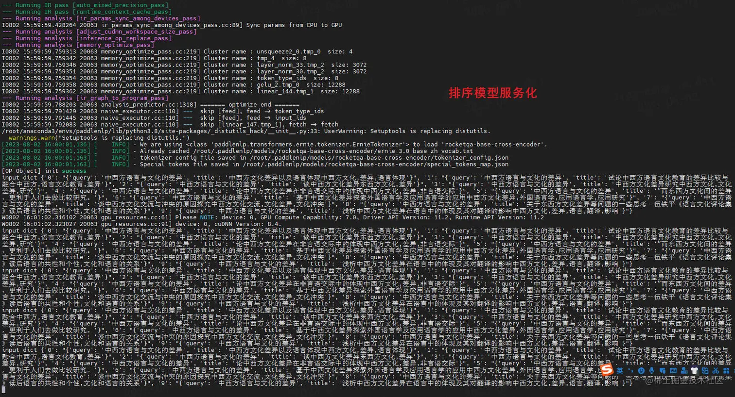 排序阶段有2种方案,第一种是ernie_matching使用的模型是 ERNIE-3.0-Medium-zh,用时 20h;第二种是基于RocketQA的排序模型cross_encoder,训练用时也是20h左右。