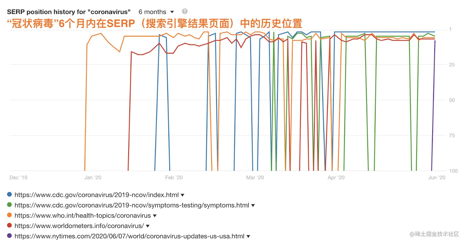 例如,冠状病毒不是一个新名词。 它一直是一组病毒的名称。 但众所周知,搜索意图在2020年初迅速改变。人们开始寻找有关特定冠状病毒(SARS-CoV‑2)的信息,因此必须对SERP进行相应的调整。