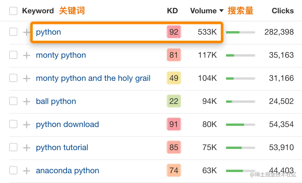大约40%的英语单词是多义词——它们有两个或更多的含义。这可以说是语义搜索要解决的最重大的挑战。例如,仅在美国,关键词 “python “的月搜索量就有53.3万次: