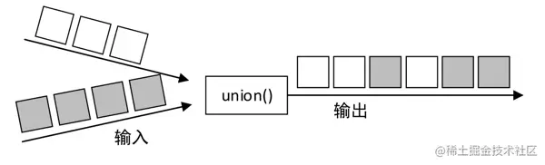 union:union()算子用于将两个或多个数据流进行合并,创建一个包含所有数据流所有元素的新流(不会去除重复元素)。