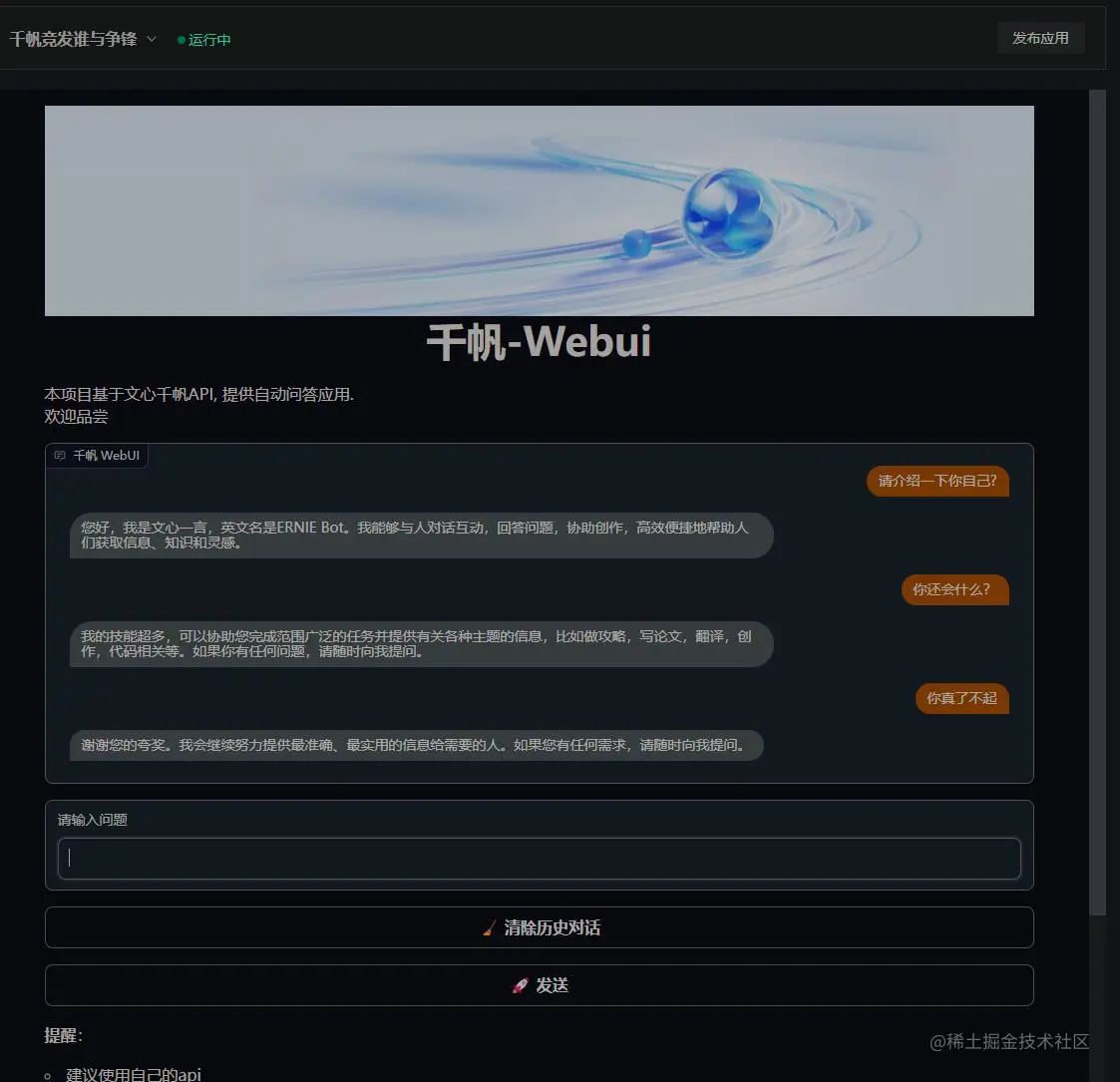 大家期待文心一言API开放好几天了,那么项目来了,本项目是基于千帆API构建自己的聊天机器人,非常方便。